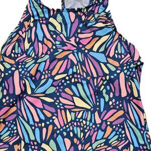 -Size 14/16 (XL), with built in swim bottoms and front pockets on both sides