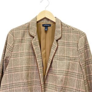 Lands End Glen Plaid Single Button Blazer Tan & Brown Leather Buttons Size 16