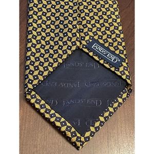 Land’s End Gold Black Hand Made 100% Silk Men’s Neck Tie Made In USA