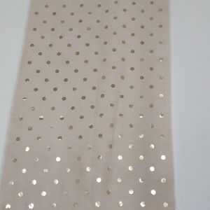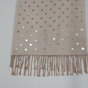Lands End Gold Metallic Polka Dot Fringe Beige Scarf