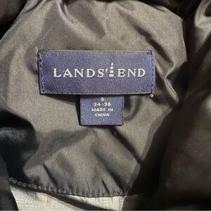 Lands End Mens Small Goose Down Puffer Vest Black Button Snap Pockets Quilted in excellent used condition. No stains, tears or rips.