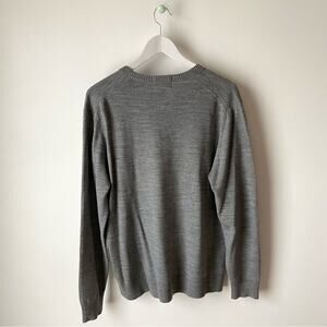 Soft gray v-neck sweater by Land’s End in 100% merino wool. It’s in excellent preowned condition. Size large. See photos for measurements.