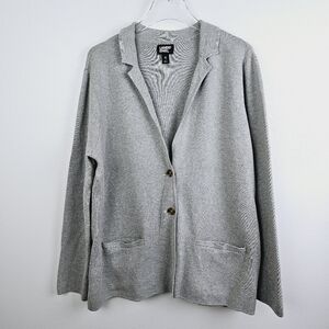 Lands' End Gray Cotton Longline Sweater Cardigan Blazer