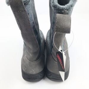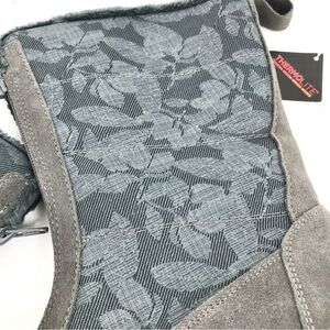 Land’s End Gray Suede Floral Canvas Front Zip Faux Fur Lined Thermolite Boot NEW