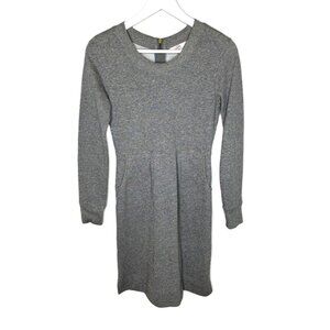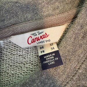 Casual yet chic, the Canvas Land's End gray sweatshirt dress features gold metallic accents and comfortable long sleeves. Rear zip closure with a fitted waist and knee-length cut. Excellent pre-owned condition.
