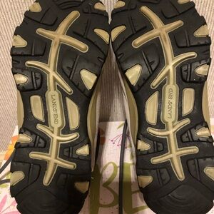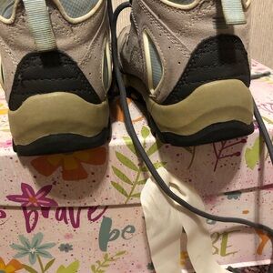 Stylish women’s Lands End boots in gray and blue. Great for hiking, roomy for extra thick socks. From PFSF home. Size 6.5, gently used.