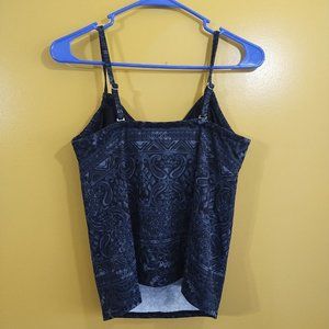Nylon and spandex; bust is lined; adjustable straps; good condition and quality