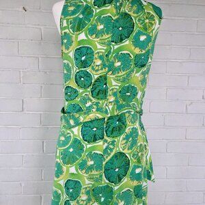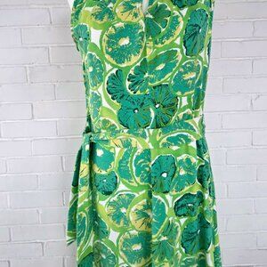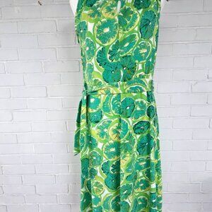 Land's End Green Floral Pullover Knit tank Dress with Lime Citrus Pattern Size S
