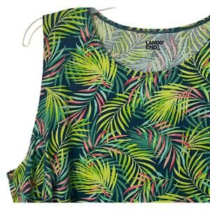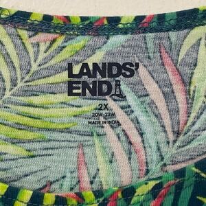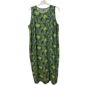 Lands' End Green Tropical Maxi Dress Womens Size 2X Palm Print Long Longline