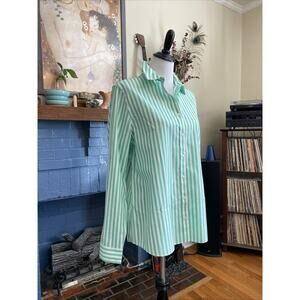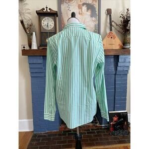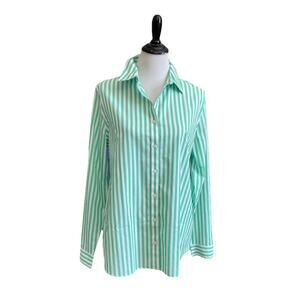 Lands' End Green and White Striped Button Down Shirt