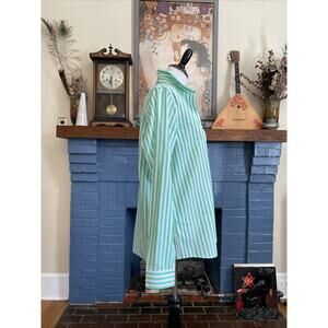 Stylish button down shirt. Green and white stripes. Perfect for casual or formal wear.