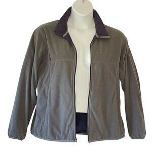 Lands' End Grey Microfleece Women's Windcheck Jacket with Navy Mock Neck 16