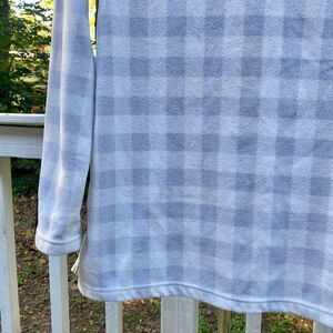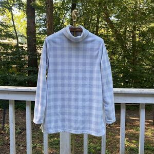 Lands’ End Grey White Check Fleece Turtleneck Tunic Sweater