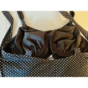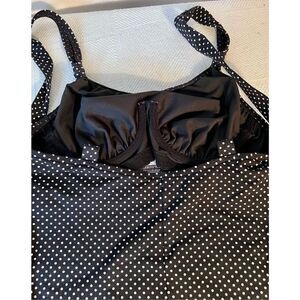 Land’s End Halter Tankini Top Bathing Suit Black White Polka Dot Women’s Size 8