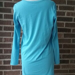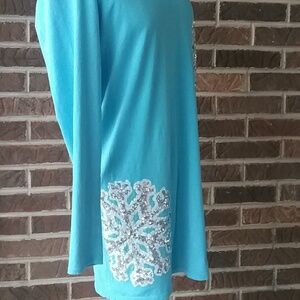 This top is pre owned but in excellent condition. This shirt is an icey blue with silver sequined snowflakes. This is perfect for the holidays especially Hanukkah. It could also be worn all through winter.
