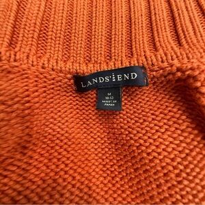Lands End heavy knit, button up, mock turtleneck sweater. Faux mother of pearl buttons. Color - burnt orange. Size medium (10-12). 100% cotton. Excellent condition.