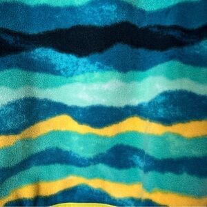 Lands' End Heritage Teal Mountain Ombre Print Snap Closure, Mock Neck, Fleece Pullover with Hand Pockets. Trimmed out in Bright Yellow.