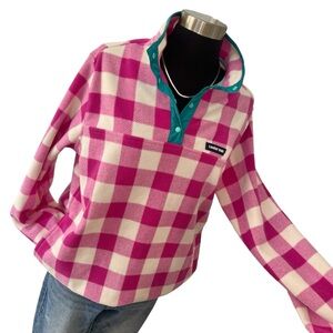 Lands’ End Heritage pullover fleece verbena buffalo check snap neck M
