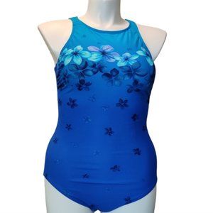 Land's End High Neck Chlorine Resistant High Leg Portrait Back Swimsuit EUC Sz16
