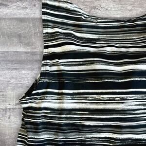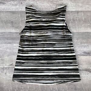 Lands End High Neck Modest Tankini Swim Top Womens 4 Black White Soft Cup Bra