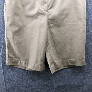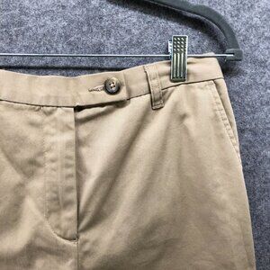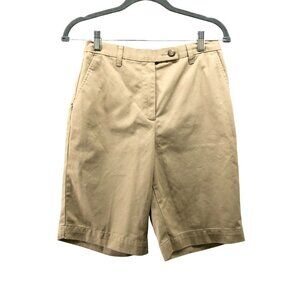 Lands' End High Rise Bermuda Chino Shorts Womens 4 Fit 3 Khaki Beige Flat Front