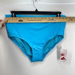 Lands End High Waisted Bikini Swim Bottoms Size 14 Turquoise Chlorine Resistant. New with tags. Measurements in photos. Style 522601. Fast shipping!