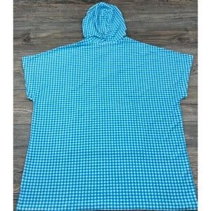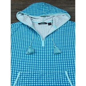 Lands’ End Hooded Blue White Check Beach Cover Up Oversized Terry Cloth S/M