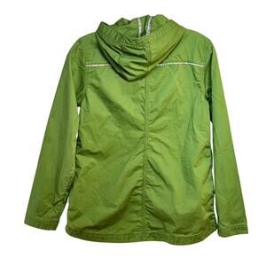 Good preowned condition. Multiple pockets, 100% cotton lightweight jacket with hood. Solid green. From 2017. Clean, no stains or holes. Metal zipper.