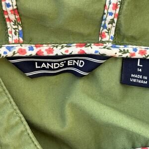 Lands' End Hooded Jacket Girls Large Size 14 Green Cotton Zip Up Unlined