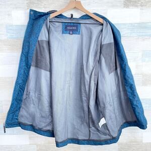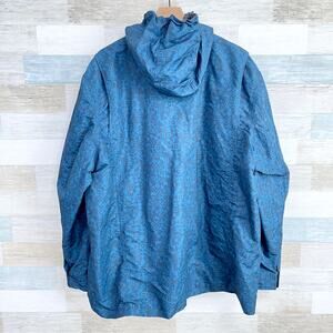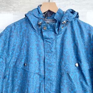 Lands End Hooded Rain Jacket Blue Aztec Print Full Zip Mesh Lined Mens XXL 2XL