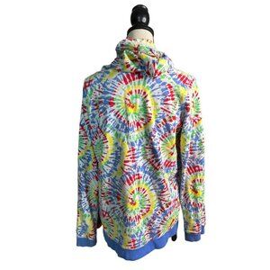 Lands End Hoodie Tye Dye Blue Yellow Blue Kangaroo Pocket Blue Cuffs & Hem XXL