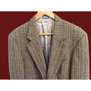 Lands End Houndstooth Plaid Wool Blazer Preppy Vintage Style Academia 41R