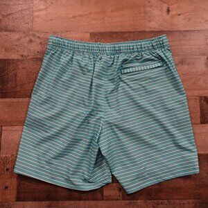 Lands’ End Hybrid Swim Shorts Men’s Medium 7” Teal Stripe Lined Quick-Dry