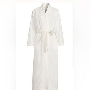 Lands End Ivory Cozy Plush Long Wrap Robe
