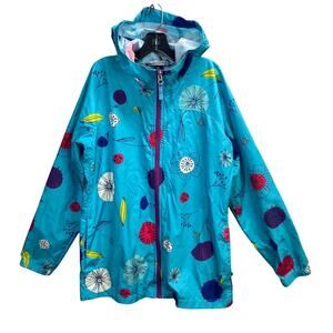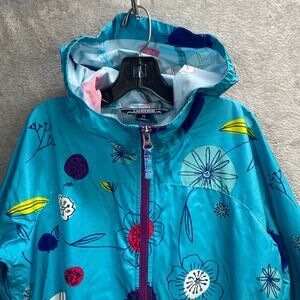 Lands End Jacket Girls Medium Floral Hooded Zip Up Lightweight Windbreaker