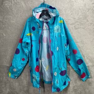 Keywords: rain jacket, floral print, hooded jacket, lightweight, colorful, outerwear, womens jacket, raincoat, spring jacket, fall jacket, casual jacket, weatherproof, travel jacket, windbreaker