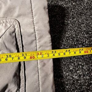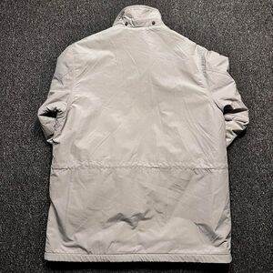 Condition: Good pre-owned condition. Light gray nylon shell with warm gray fleece lining. Minor signs of wear, no major flaws. Full zip and velcro closure with dual flap pockets. Classic vintage utility winter coat.