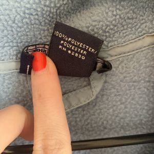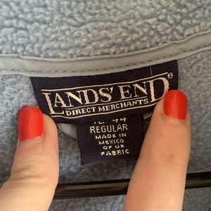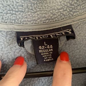 Lands' End Jacket Mens Large Light Blue Fleece PolarTec Aircore 200 Long Sleeve. In great condition overall, a little pilling around the wrists and a small few stain spots on the inside collar (not noticeable when wearing!) See photos for details. A very faint discoloration spot on the front, hard to see really.