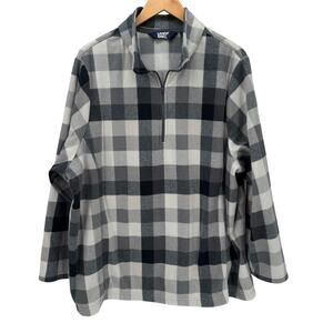 Lands End Jacket Womens 3X Fleece Pullover 1/2 Zip Long Sleeve COMFY Gray Check