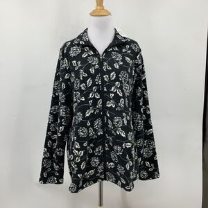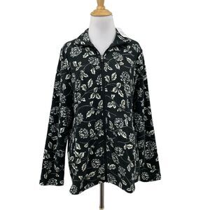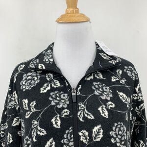 LANDS END JACKET WOMENS M MEDIUM FLORAL FULL ZIP FLEECE POCKETS ANTI STATIC