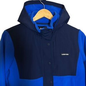 Lands’ End Jacket Women’s Size Medium (10-12) Fleece Hooded Blue Full Zip Coat