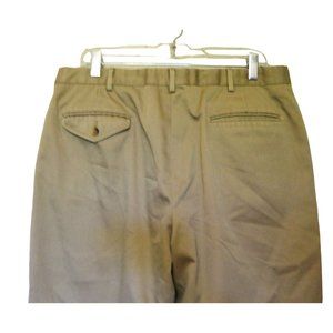 Lands End Khaki Pants 36 Tan Chinos Flat Front Casual Inseam 28 Polyester Cotton