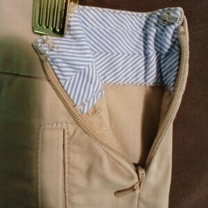Lands' End Khaki Pencil Long Mini Skirt Front Slit Pockets Slit Back Sz 10