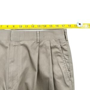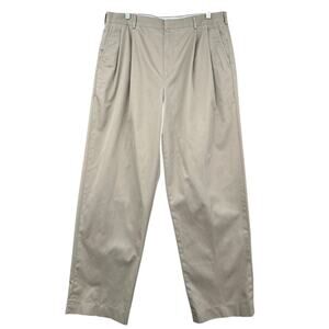 Lands End Khaki Relaxed Fit Pleated Side Pockets Classic Style Pants Size 35 x 30