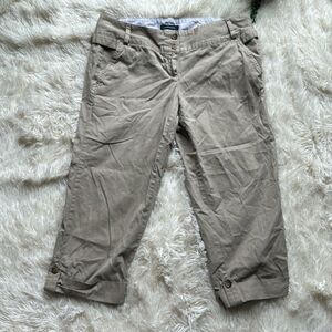 Lands’ End Khaki Cropped Capri Pants Cuffed Size 10P 10 Petite