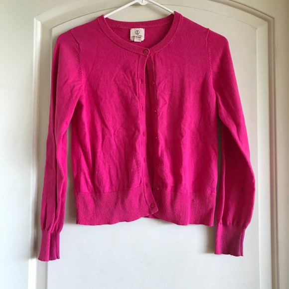 This pink cardigan is in like-new condition and its vibrant pink color can brighten any outfit!