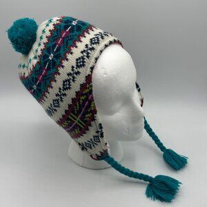Lands' End Kids' Fleece Lined Winter Ear Flap Fair Isle Hat with Pom Pom