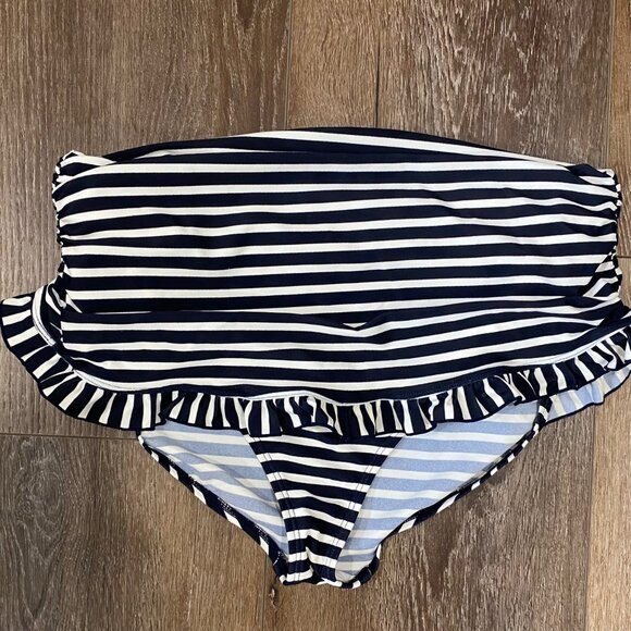Lands End Kids High-Waisted Striped Navy & White Ruffle Swim Bottoms Size 16