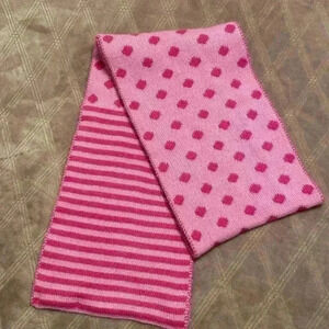Lands End Kids NWOT Pink Polka Dot & Striped Knit Scarf.
