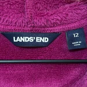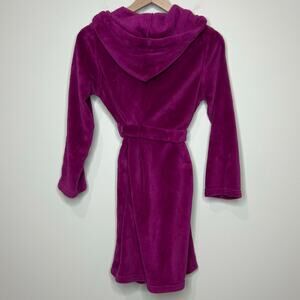 Lands' End Kids Purple Plush Fleece Bathrobe Size 12 Hood Attached Belt Robe